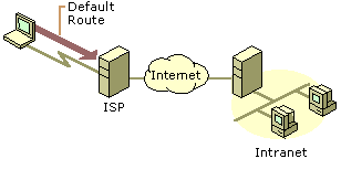 As a result, the intranet locations that are not on the dial-up client's directly attached network are not reachable for the duration of the connection to the ISP. If the new default route is not created, all intranet locations are reachable, but Internet locations are not.