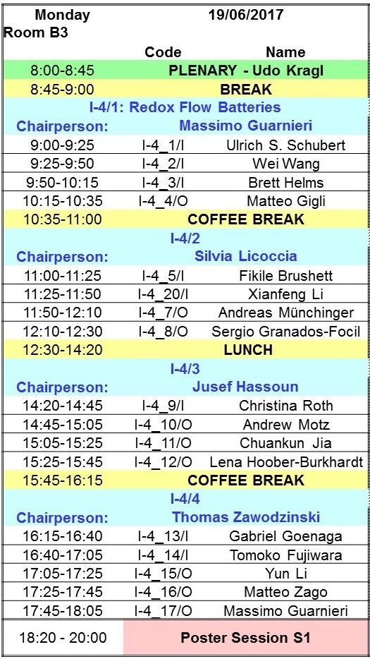 Schedule of Symposium I-4: Ionics in “open” batteries (redox flow batteries)